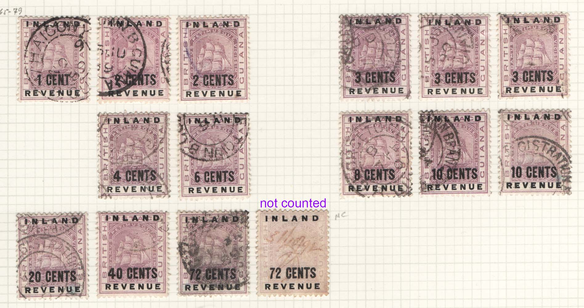 British Guiana 1888 1c – 72c ovpt range fine used sg175-184, some duplication ?varieties cat £154 also a second 72c faded (not included in totals) [ref: 294/17 b08/am0289]