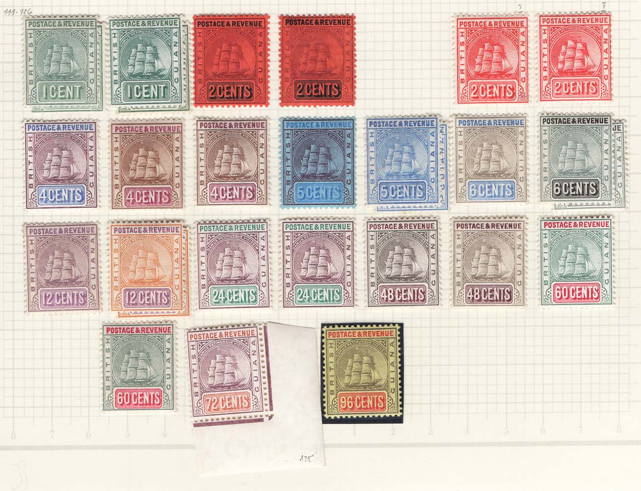 #023 British Guiana 1905 MCA set of 11 with extra shades & papers plus 1907 colour change set (incl both 2c types) f mint sg240-250, 253-257 c£380+