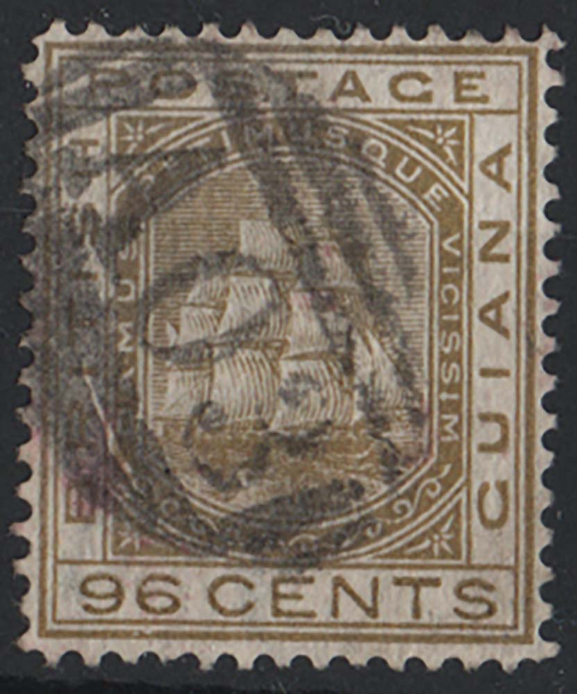 British Guiana 1876 96c olive-bistre fine used sg134, A03 numeral cat £250 [ref 291-24/sa/ai0583]