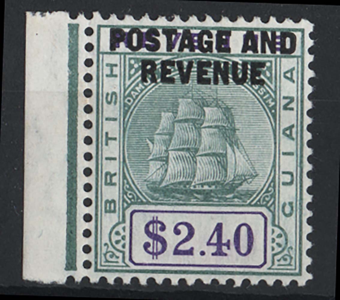 British Guiana 1905 $2.40 green & violet ovpt Postage and Revenue sg251 unmounted mint cat £190 as mm [ref 291-25/sa/ai0574]