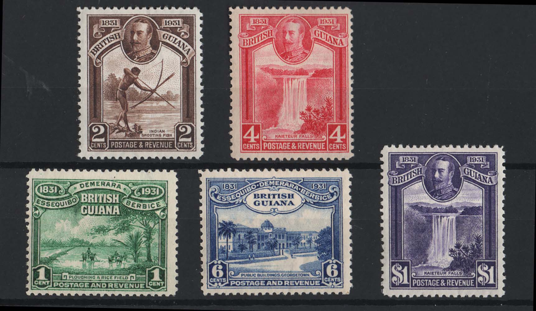 British Guiana 1931 Centenary set fine mint sg283-287 [ref 291-28/sa/ai0579]