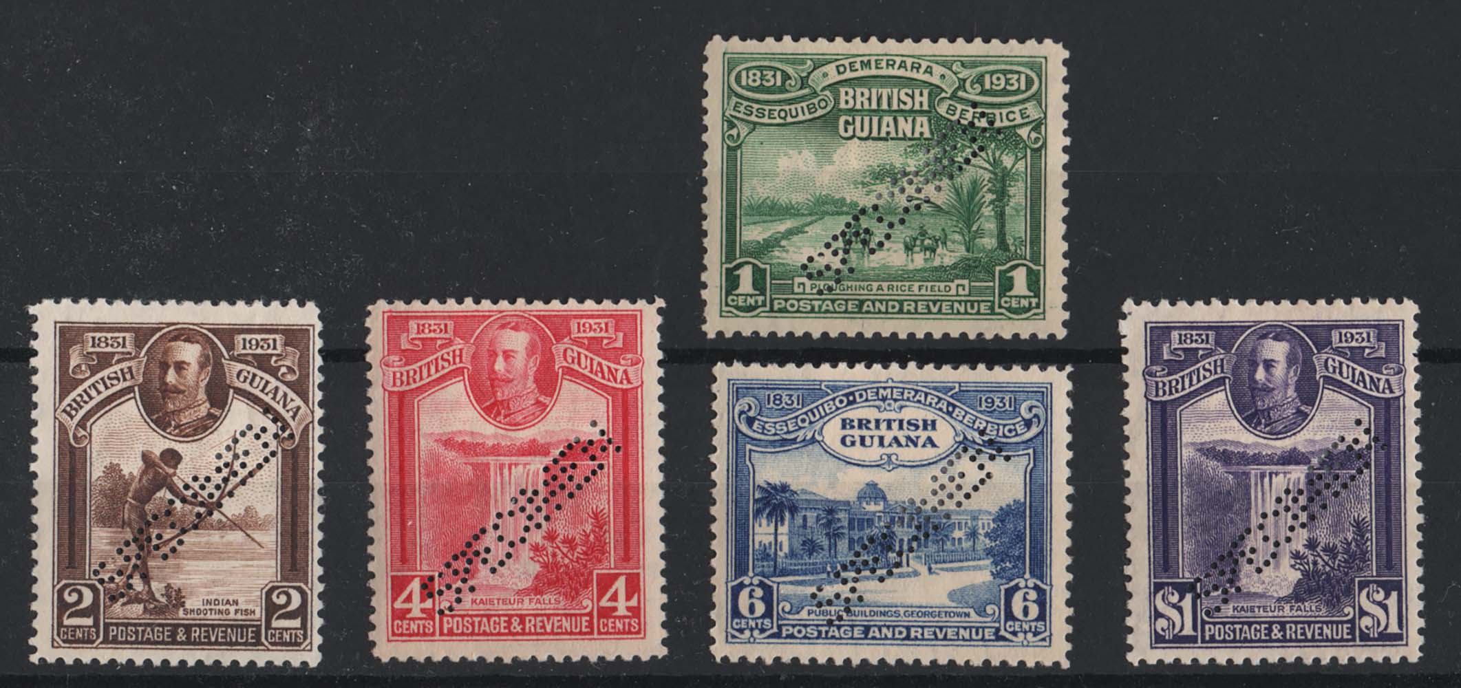 British Guiana 1931 Centenary set perfin Specimen fine mint sg283s-287s cat £150 [ref 291-30/sa/ai0573]