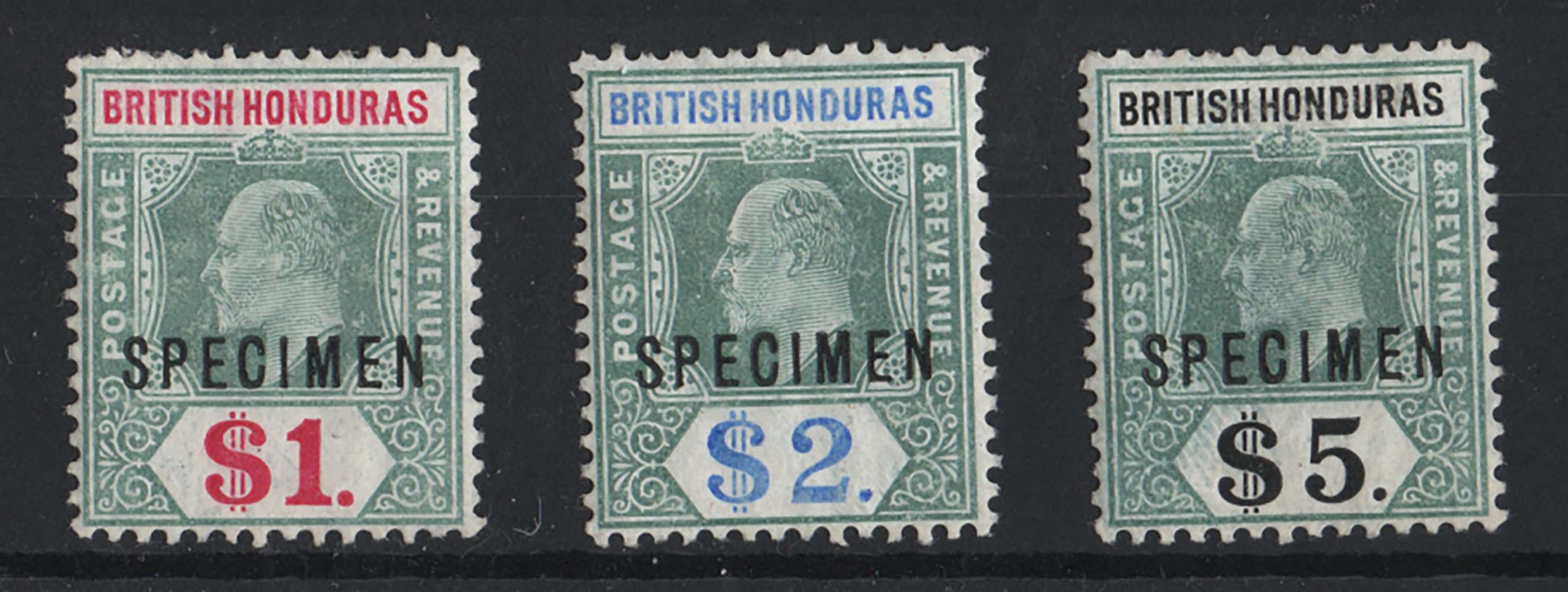 British Honduras 1902 $1 – $5 ovpt Specimen fine mint, v fresh sg91s-93s [ref 291-34/sa/ai0570]