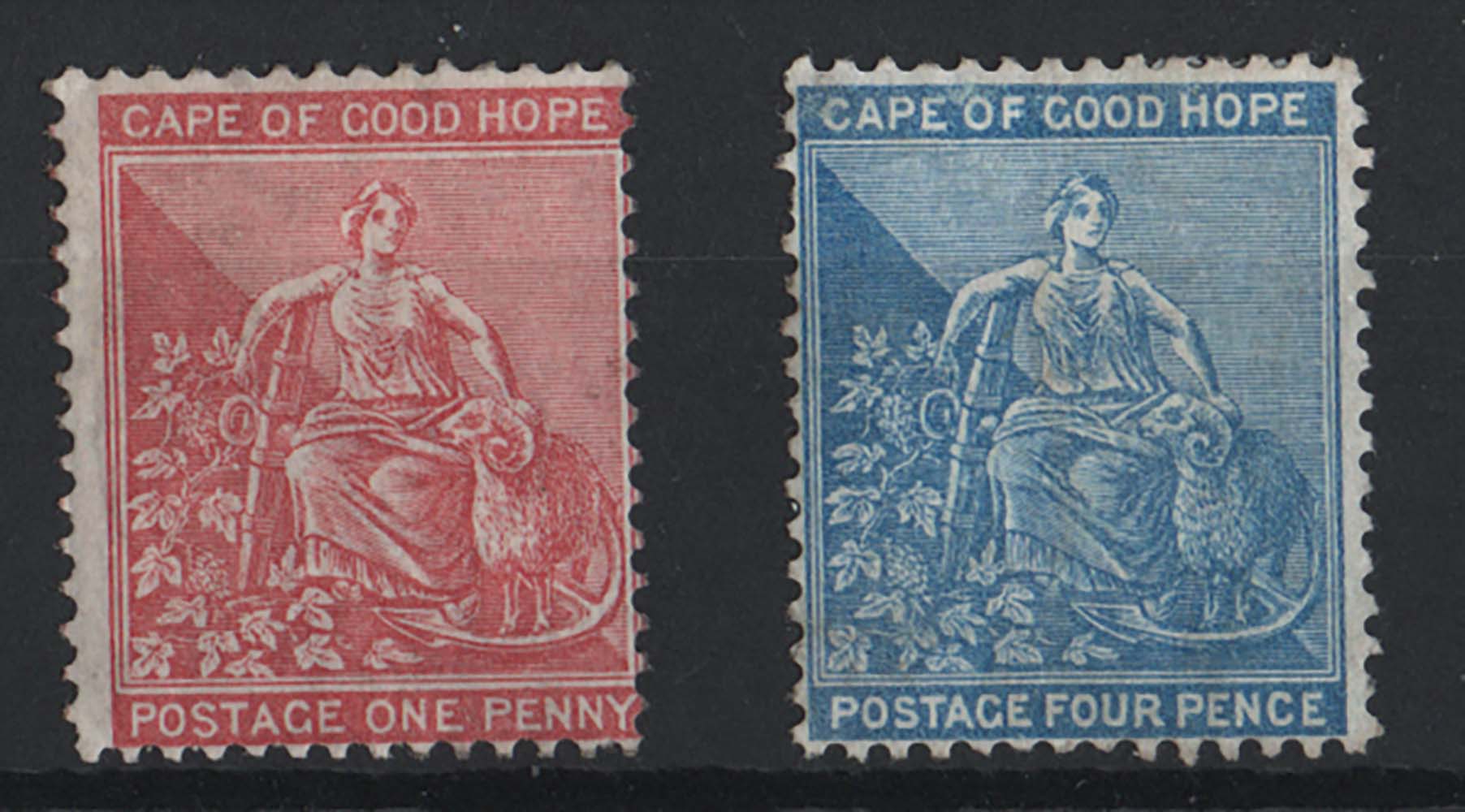 Cape of Good Hope 1871 1d & 4d (without outer frame) watermark CC, mint no gum sg29-30 cat £320 [ref 291-41/sa/ai0596]