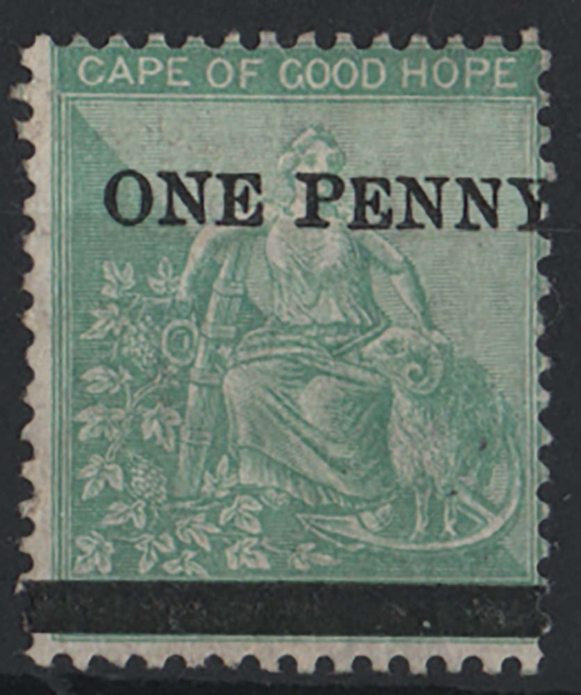 Cape of Good Hope 1874 1d on 1s green sg33 mint no gum cat £150 [ref 291-47/sa/ai0600]