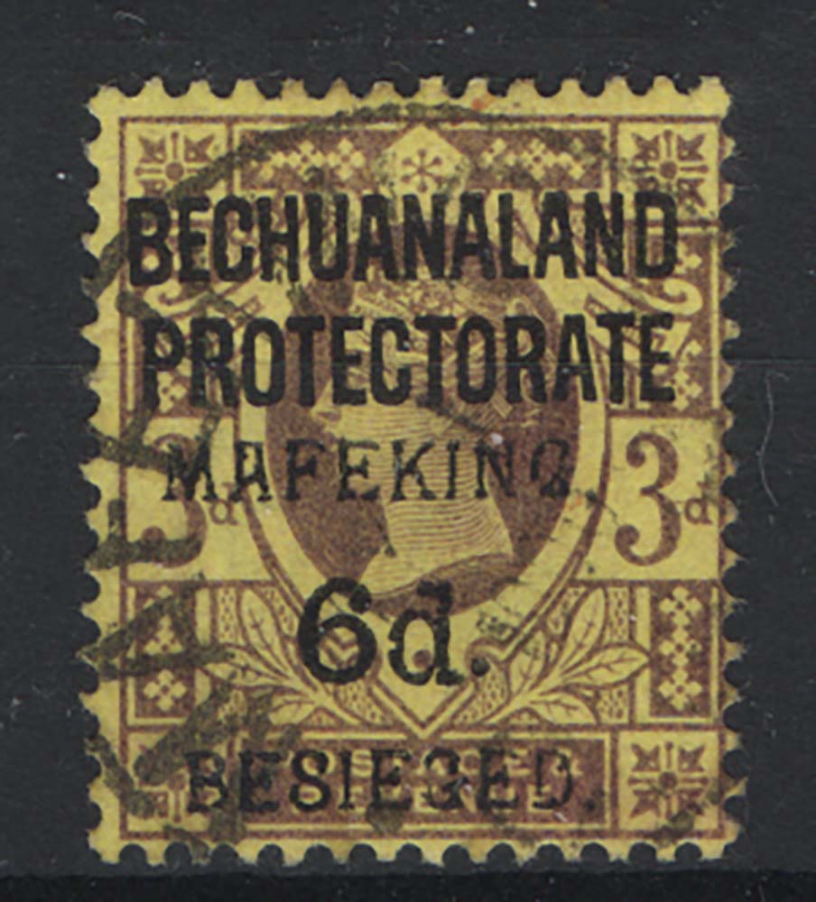 Cape of Good Hope 1900 Mafeking 6d on 3d purple/yellow sg9 very fine used cat £475 [ref 291-54/sa/ai0002]
