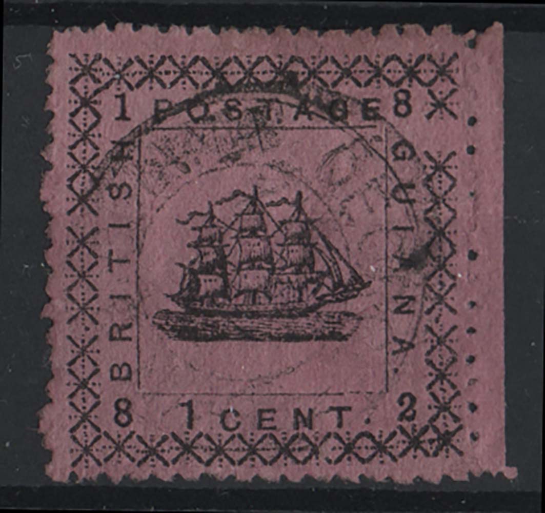 British Guiana 1882 1c black on magenta, type 1 WITHOUT Specimen sg162b very fine used cat £550 [ref 293-55/sa/ak0412]