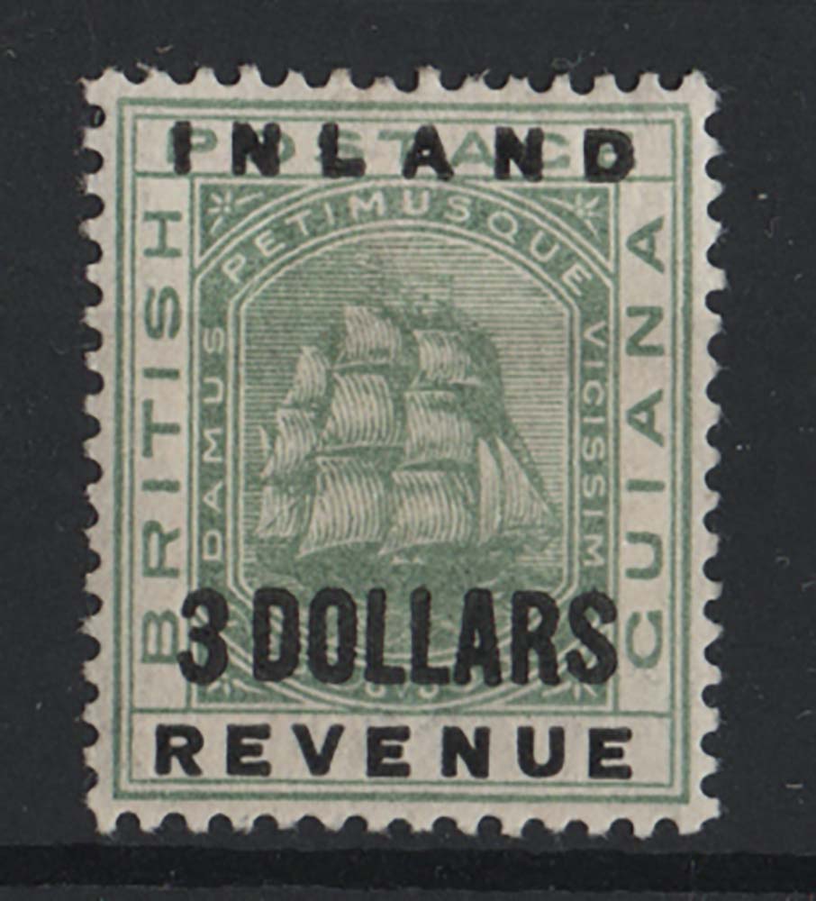 British Guiana 1888 $3 Inland Revenue ovpt sg187 very fine mint cat £325 [ref 293-57/sa/ak0414]