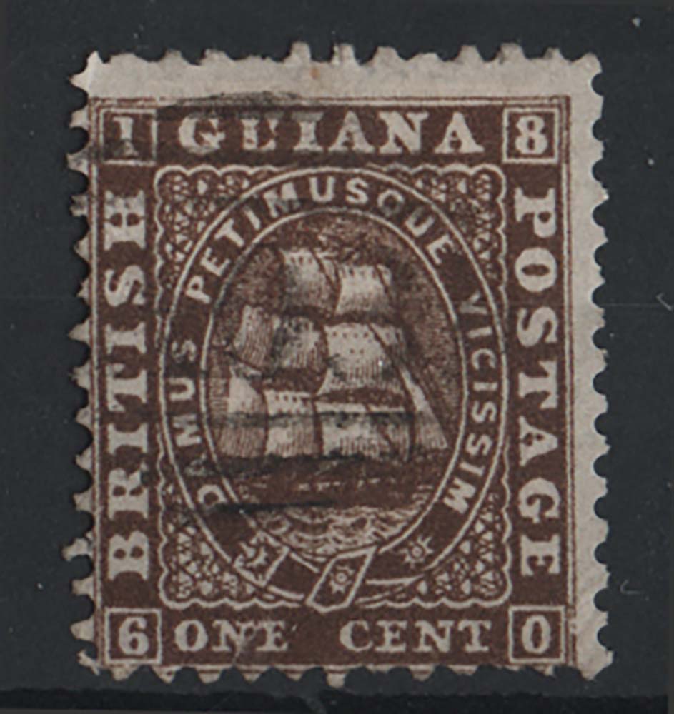 British Guiana 1862 1c brown perf 12, thin paper fu, nibbled perf sg41 c£300
