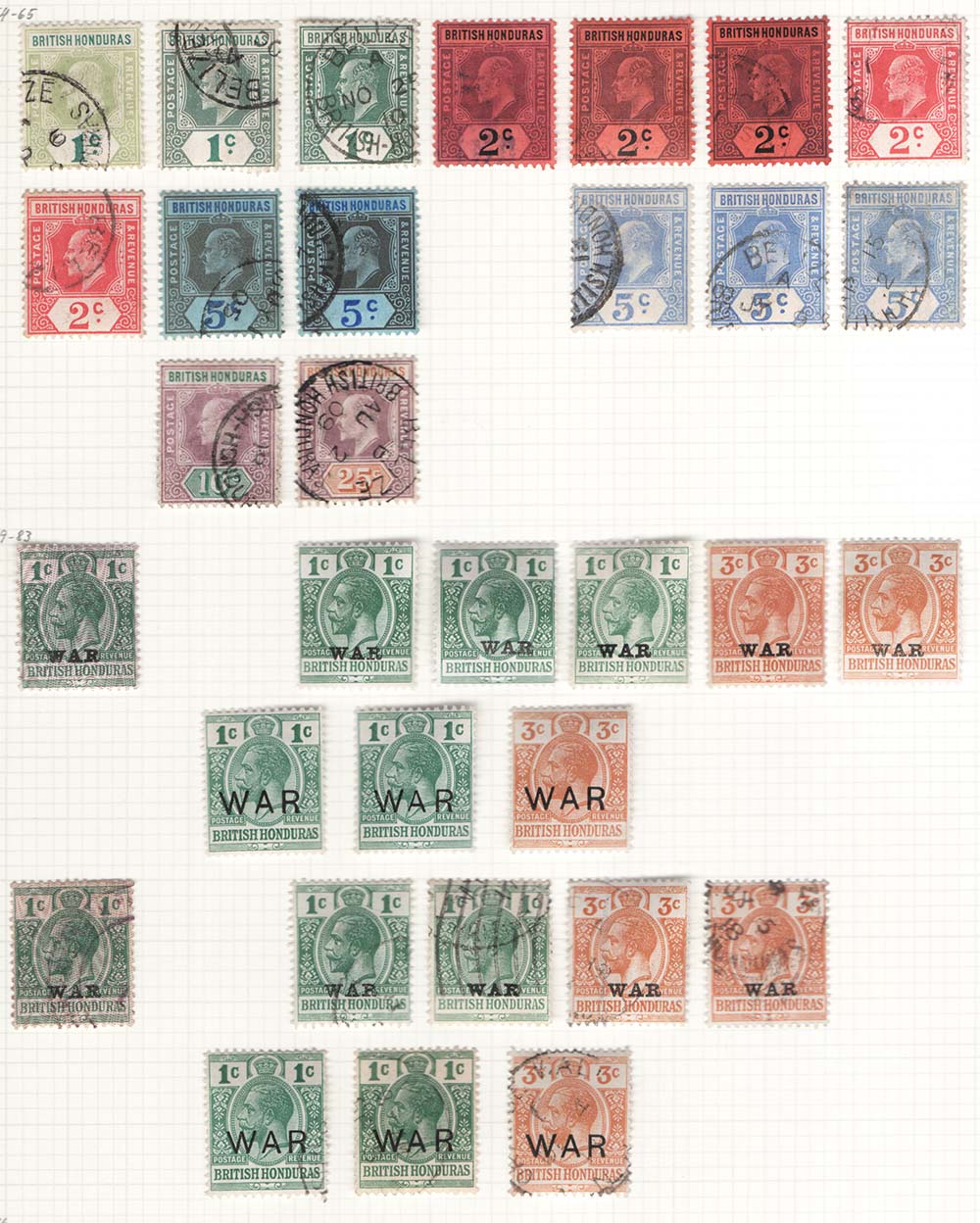 British Honduras 1904-1908 KE7 fine used range to 25c, then 1917-18 War tax m&u range cat £200+, sg84-89, etc, sg114-120 [ref 293-65/b07/ak0436]