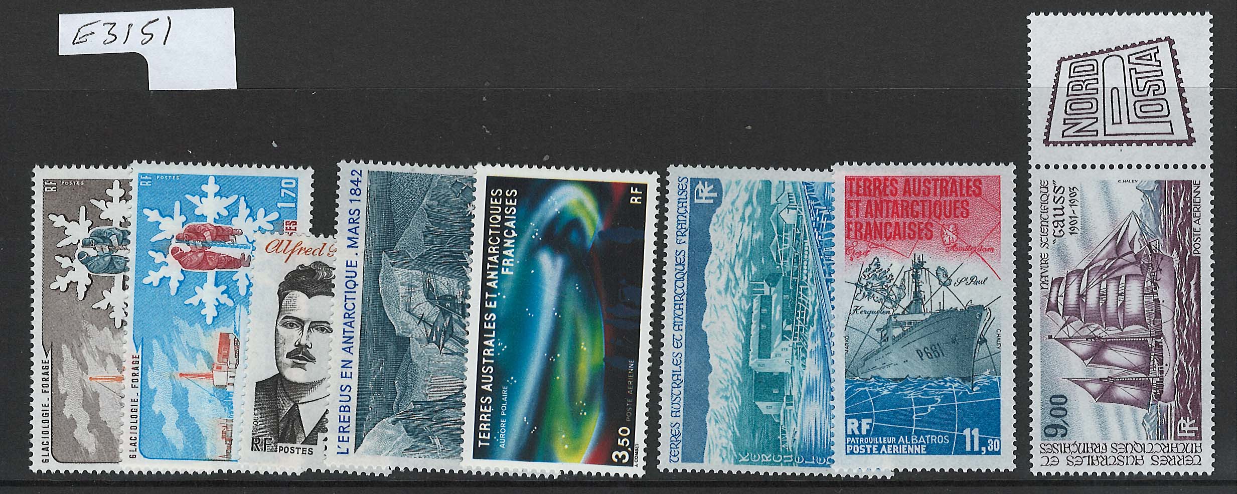 French Antarctic Eight mid-1980s stamps fine unmounted mint sg182-3, 188-9, 192-5 including ship thematics cat £32+ [ref 291-78/a11/e3151]
