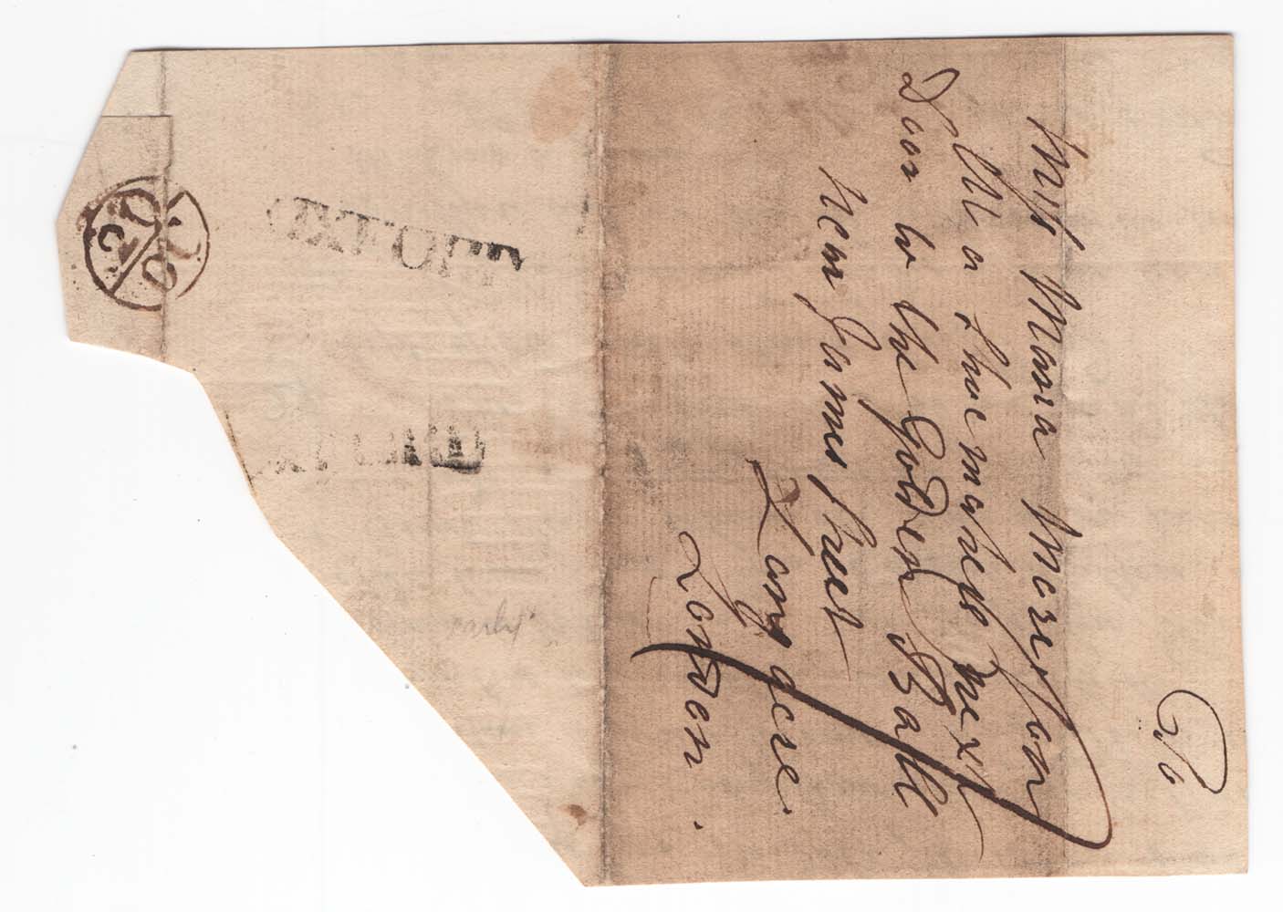 Early Bishop mark, 15mm, day at top, 20/OC (month with serif) on part letter to London, Oxford straight line, year uncertain