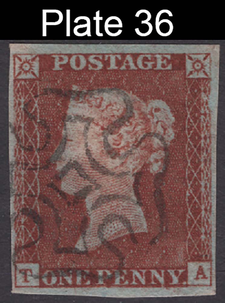 GB 1841 1d red plate 36 TA fine used, 4 good-large margins, sg8 [ref: 294/83 sa/am0388]