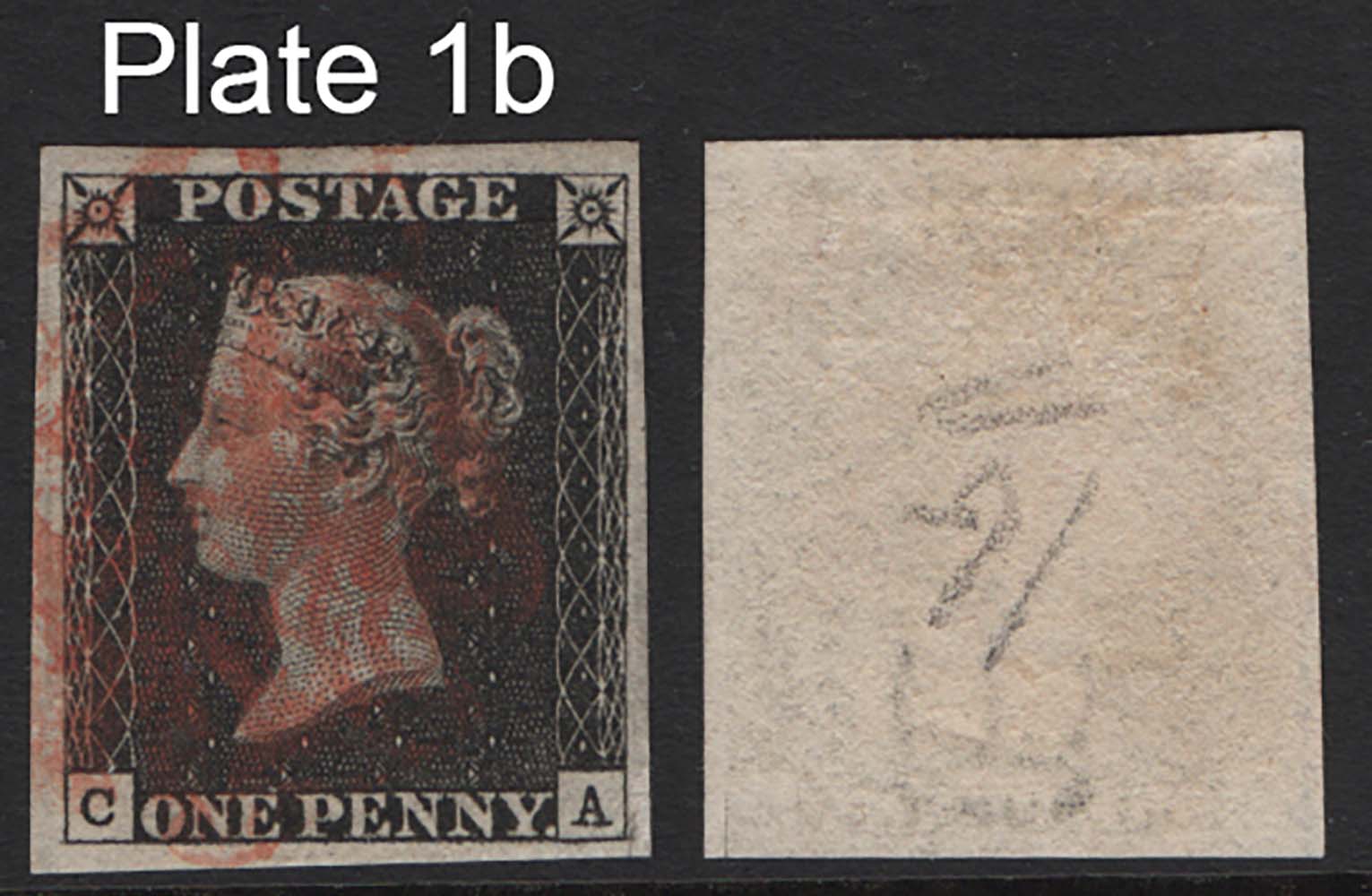 GB 1840 1d black plate 1b CA used, small scissor cut just outside A square, still 4 margins sg2 [ref 291-92/sa/ai0330]