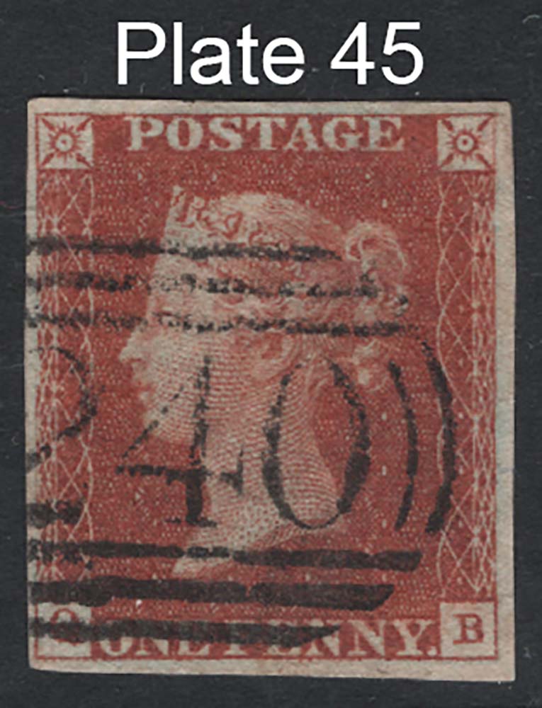 GB 1841 1d red plate 45 QB 4 margins very fine used sg8 [ref: 294/93 l/am0025]