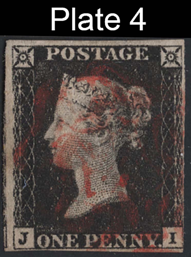GB 1840 1d black plate 4 JI fine used 3½ margins, neat MX sg2 [ref 291-96/sa/ai0245]