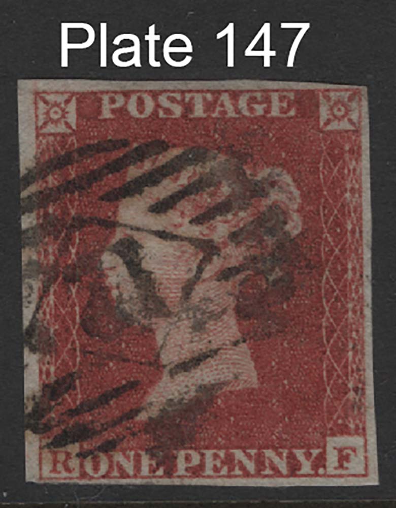 GB 1841 1d red sg8 plate 147 RF fine used, 4 close-good margins [ref: 294/102 l/ai0103]