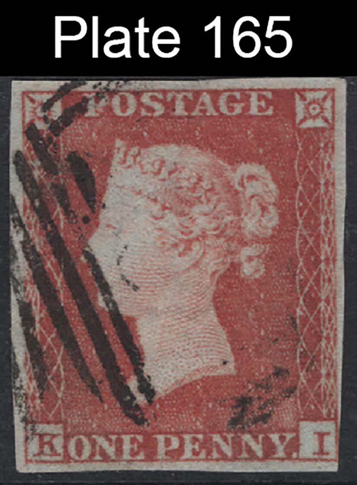 1d red plate 165 KI vfu, generally 4 good margins – almost touched I-square sg8
