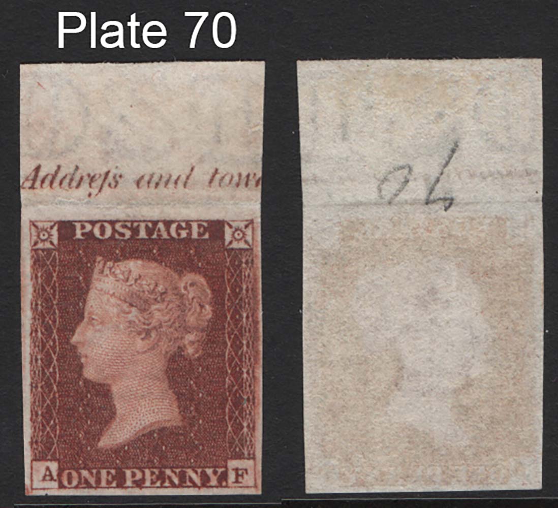 GB 1841 1d red plate 70 AF imprimatur, inscription top marginal, superb unused sg8 [ref 291-116/sa/ai0339]