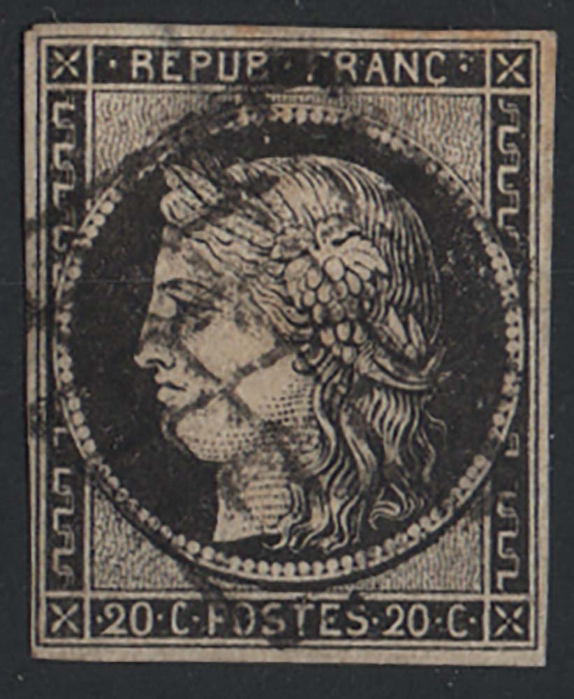 France 1849 Cérès 20c black/white vfu 4 good margins sg7 c£80 ae0818 sa 289/ #121