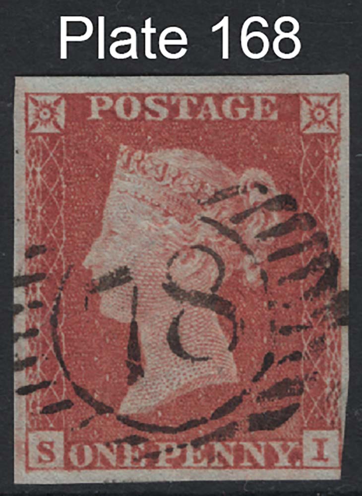 GB 1841 1d red plate 168 SI fine used, 4 large margins just touched I-square sg8 [ref: 294/121 l/am0015]