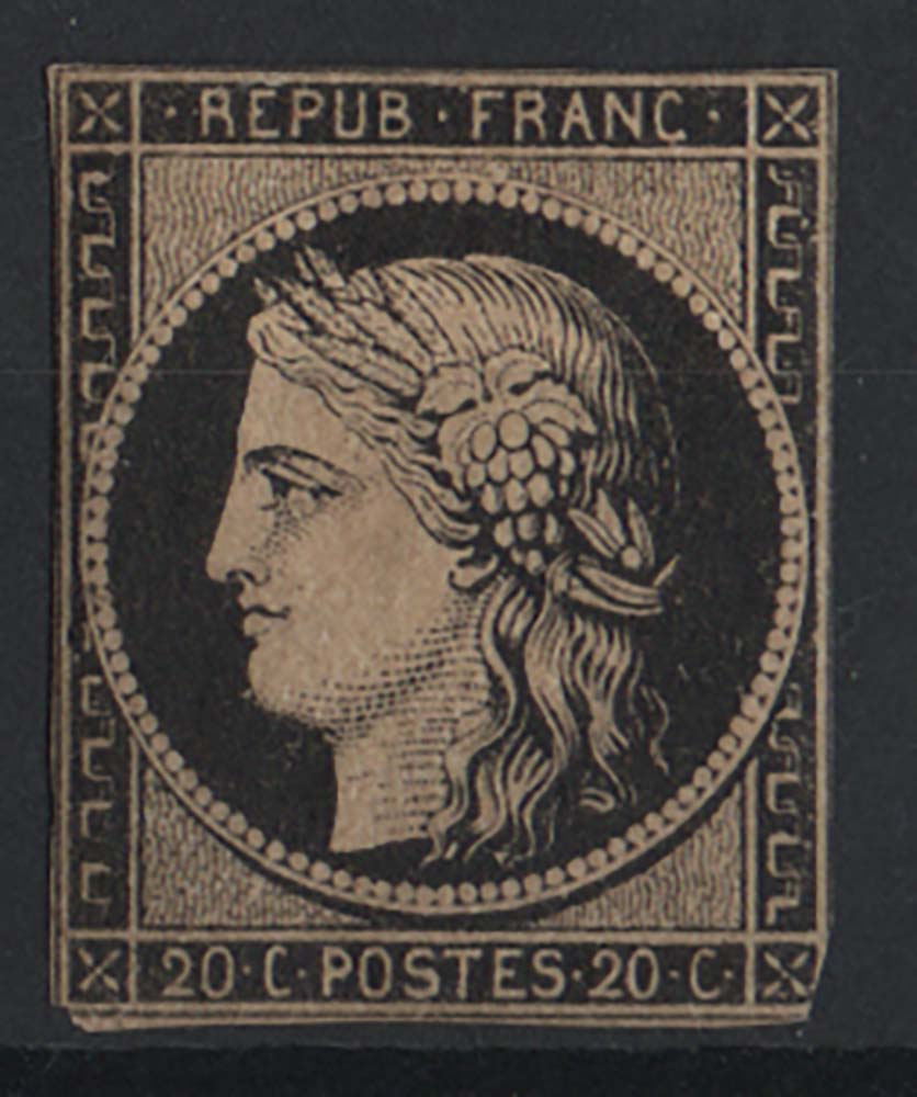 France 1849 Cérès 20c black/buff unused, tight margins, into in places, small imperfections sg9 c£1300 ae0819 sa 289/ #122