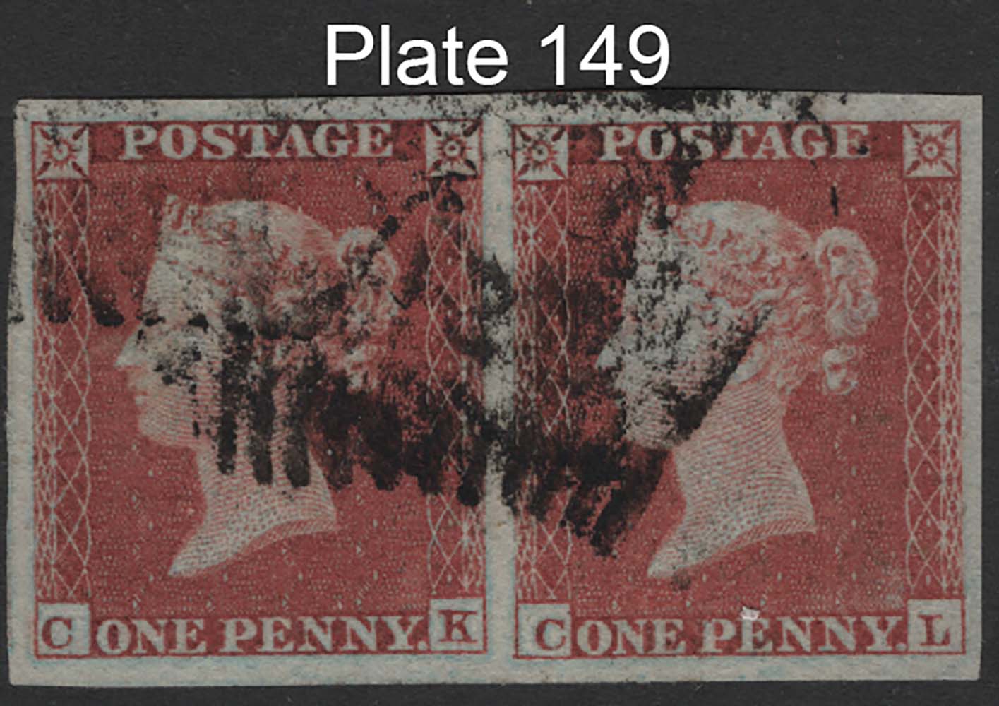 1d red sg8 plate 149 CK-CL, fu pair, 4 large margins