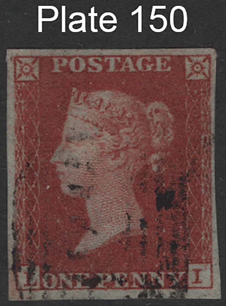 GB 1841 1d red sg8 plate 150 LI fu, 4 good margins