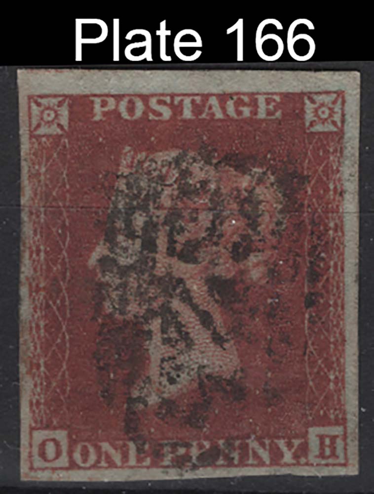 #133 GB 1841 1d lake-red plate 166 OH fu, 4 large margins, sg11 c£850