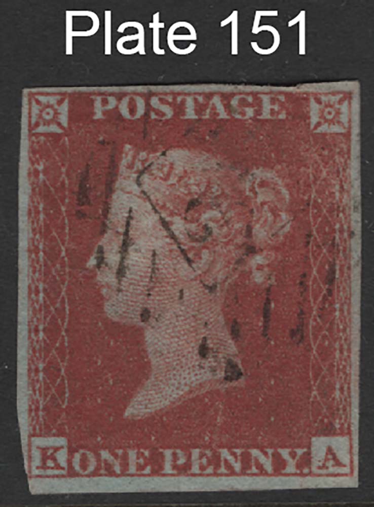 GB 1841 1d red sg8 plate 151 KA fine used, 4 good margins, close near K square [ref 291-134/l/ai0110]