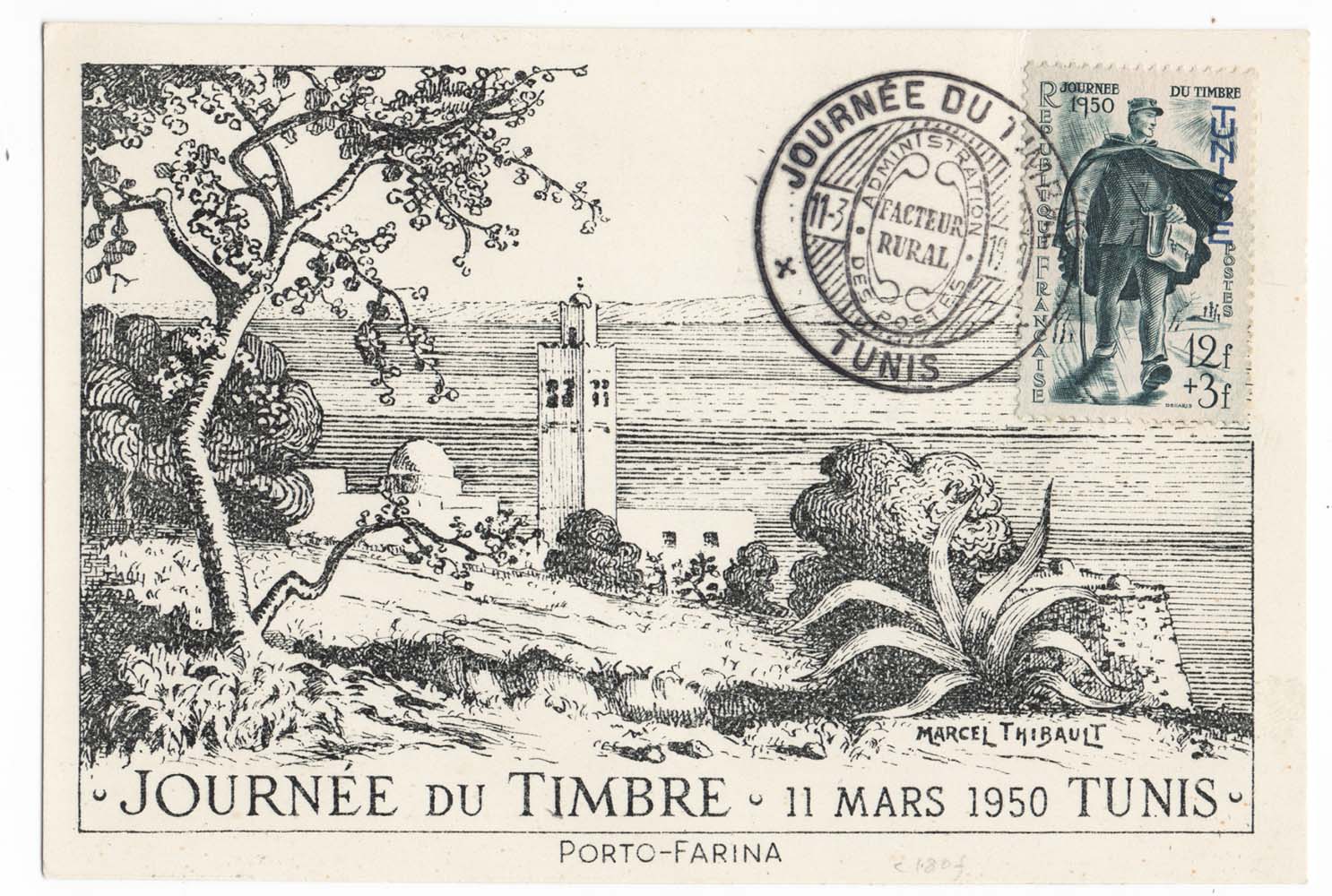 France 1950 Tunis Stamp Day first day illustrated postcard 11 Mars 1950