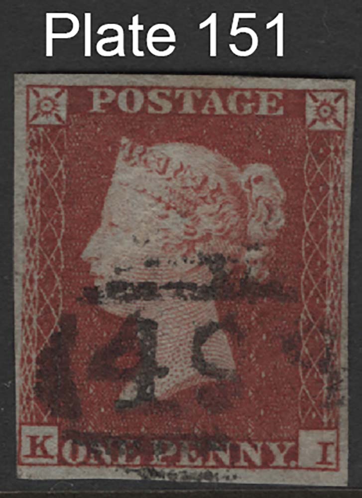 GB 1841 1d red sg8 plate 151 KI fine used, 4 good margins, close near K square [ref 291-135/l/ai0111]