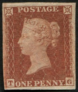 GB 1854 1d red sg17 (plate 197 TG) IMPRIMATUR four fine-large margins. Very fresh. Spec C1 cat £850 [ref: 294/149 sb/an014]