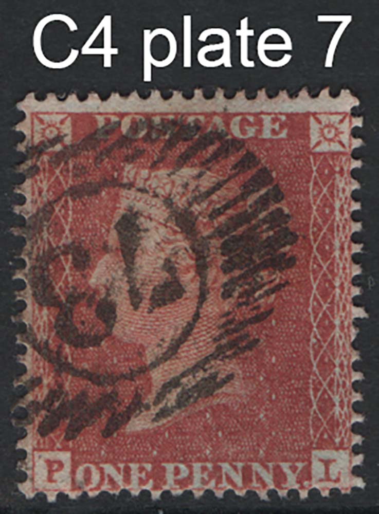 GB 1854 1d red die 2 SC16 plate 7 PL very fine used sg21 C4 small crown perf 16 cat £65 [ref: 294/157 l/ak0082]