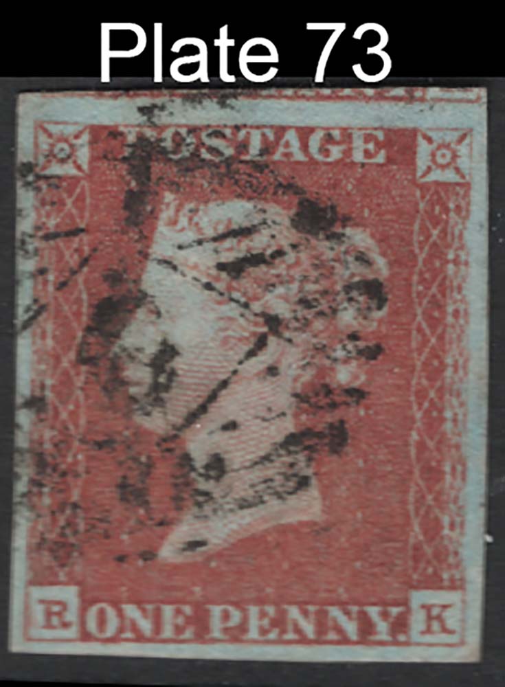 GB 1841 1d red sg8 plate 73 RK vfu, 4 huge margins