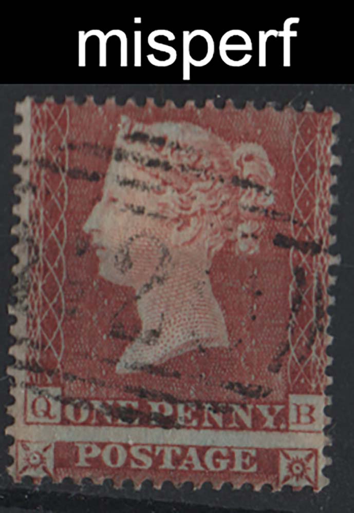 1d red die 1, small crown perf 16 sg17 vfu, error, gross misperf POSTAGE & stars entirely at base