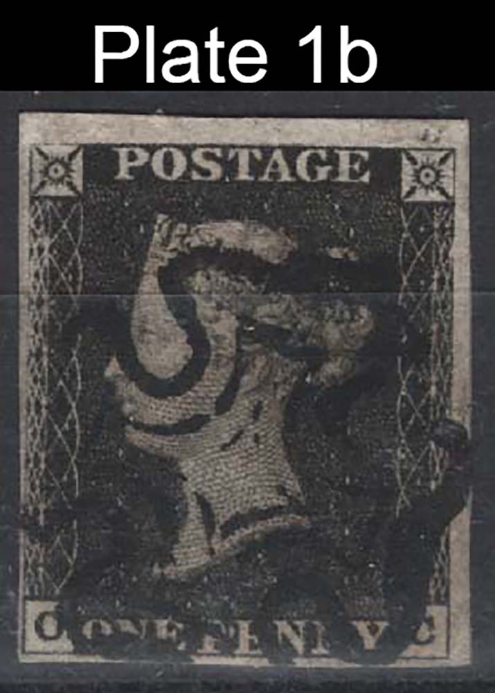 1d grey-black plate 1b OC fu, 4 good margins, black MX, sg3