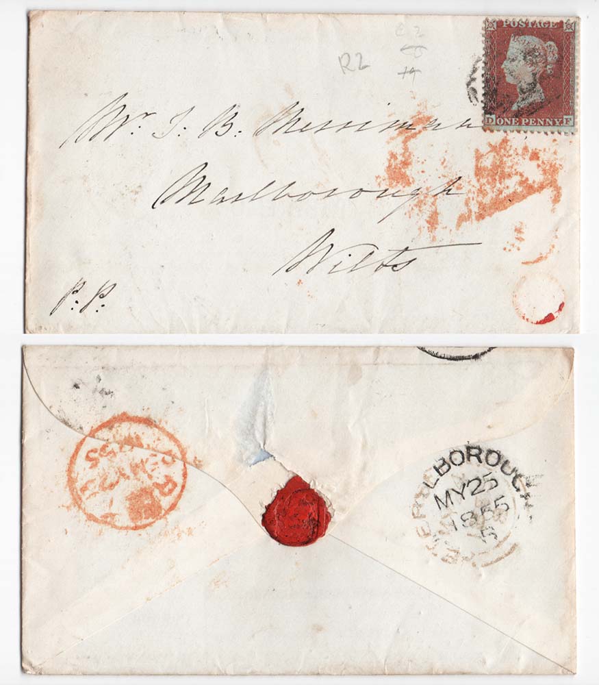 GB 1854 1d red-brown die 1 small crown perf 14 fine used on cover, incl interesting Somerset Hospital Houses for Clergy Widows document, sg22 (Plate R2 DF) Spec C2 cat £180++ [ref: 294/168 sa/am0100]