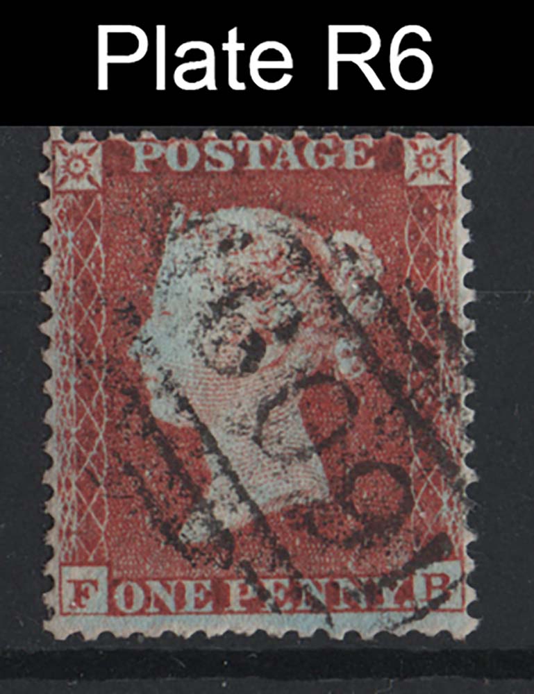 #171 GB 1854 1d red-brown die 1 small crown perf 14 fu sg22 (Plate R6 OH) Spec C2 c£100