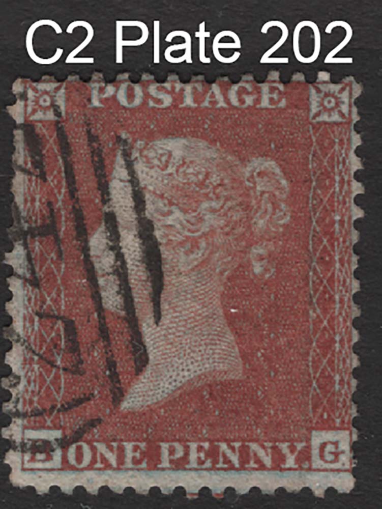 GB 1854 1d red small crown perf 14 sg22 plate 202 BG, odd nibbled perf otherwise very fine used Spec C2 cat £75 [ref: 294/172 l/ak0028]