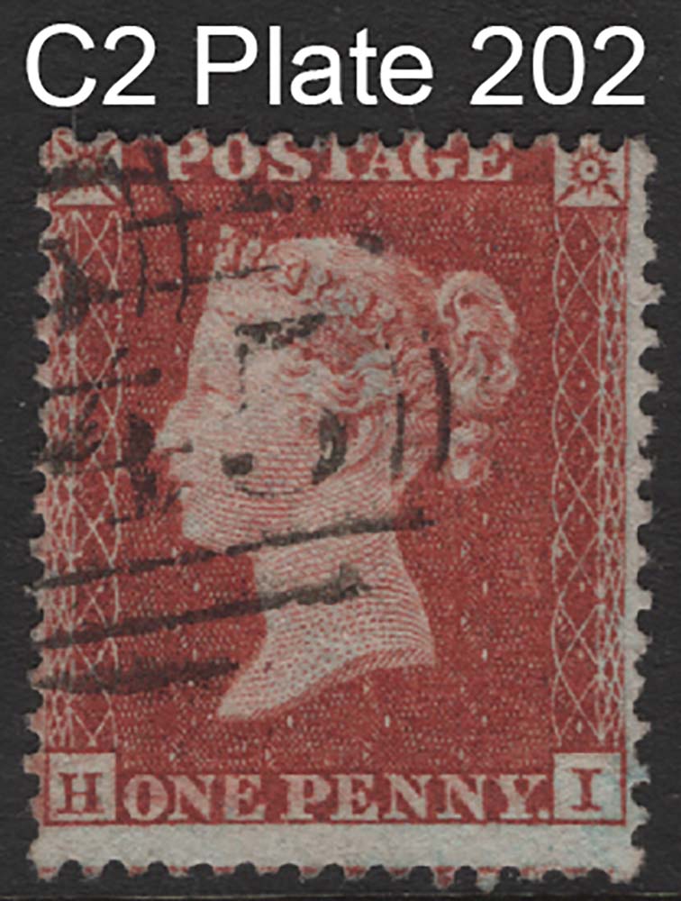 GB 1854 1d red small crown perf 14 sg22 plate 202 HI, fine used Spec C2 cat £75 [ref: 294/173 l/ak0030]