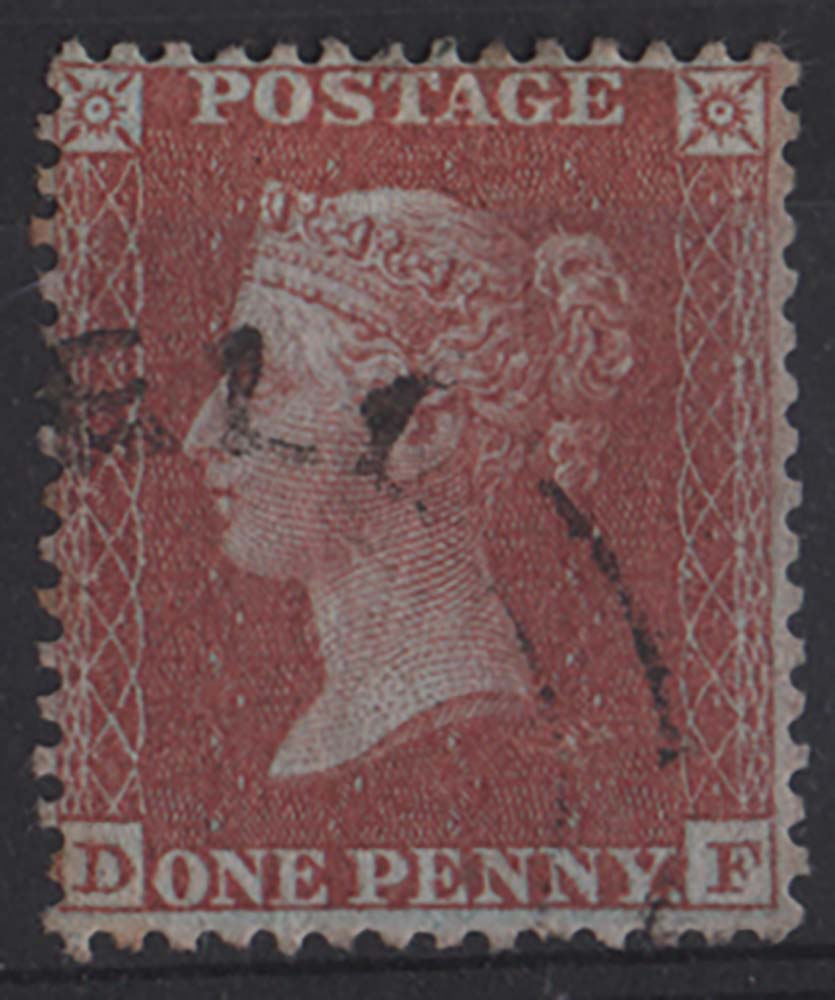 GB 1854 1d large crown p14, blued paper sg29, 1 short perf otherwise vfu cds