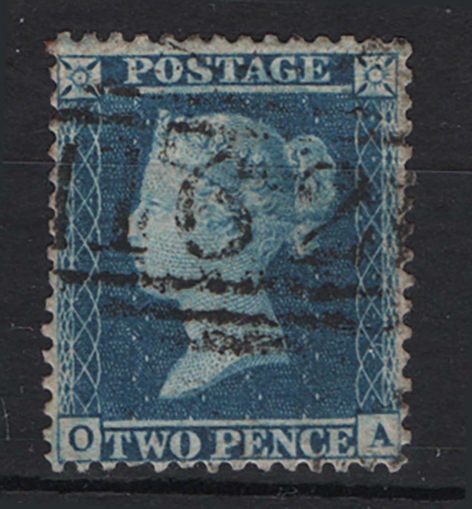 GB 1854 2d blue plate 5 small crown p14 sg23a fine used cat £350 [ref: 294/180 sa/9s0159]