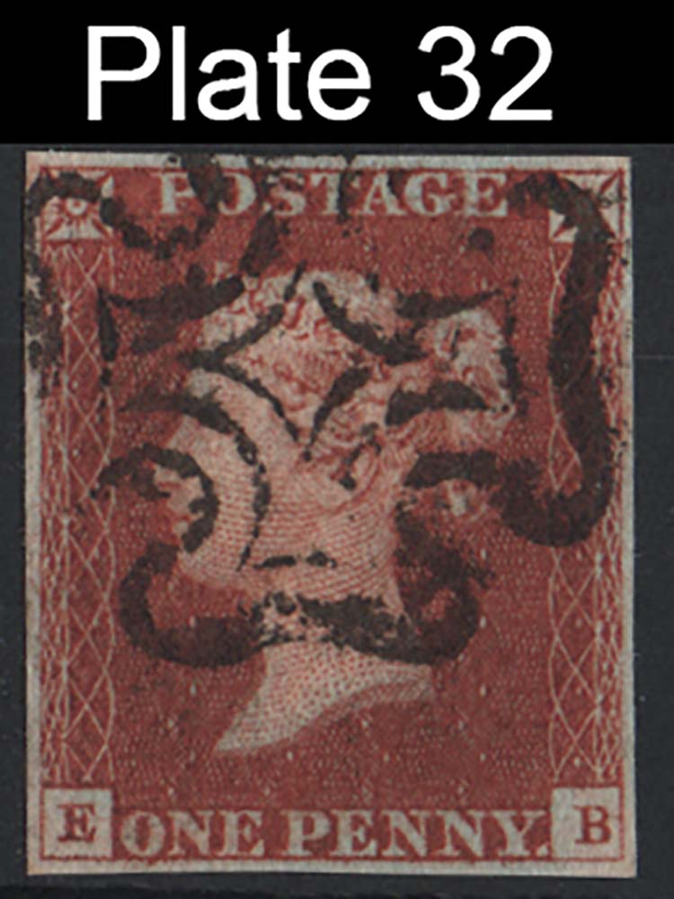 1d red plate 32 EB fu, close-good margins, c£60 sg8