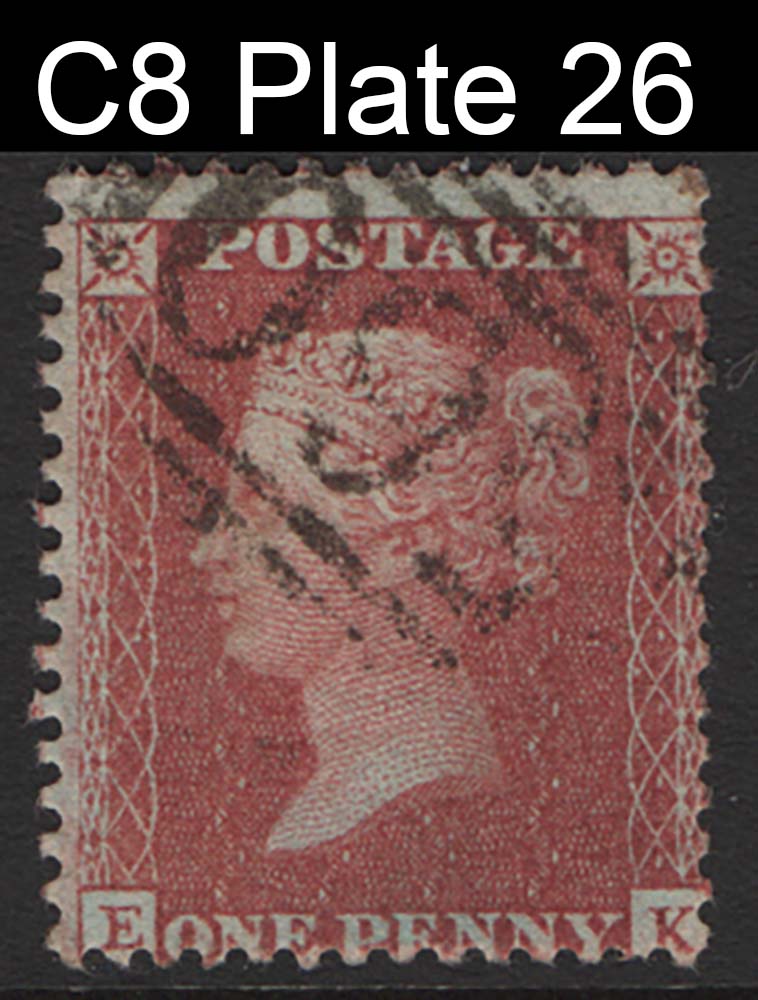 1d red LC14 plate 26 EK sg29 C8 fu, odd nibbled perf, large crown perf 14 blued paper c£70 as plate 26