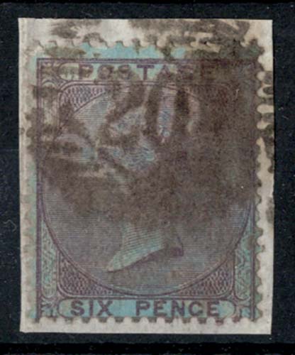 6d lilac on azure sg70a, firm London numeral, tied small piece cat £950
