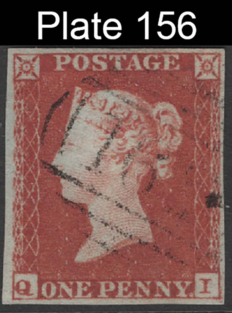 GB 1841 1d red plate 156 QI vfu, 4 margins sg8 [ref 293-196/l/ak0010]