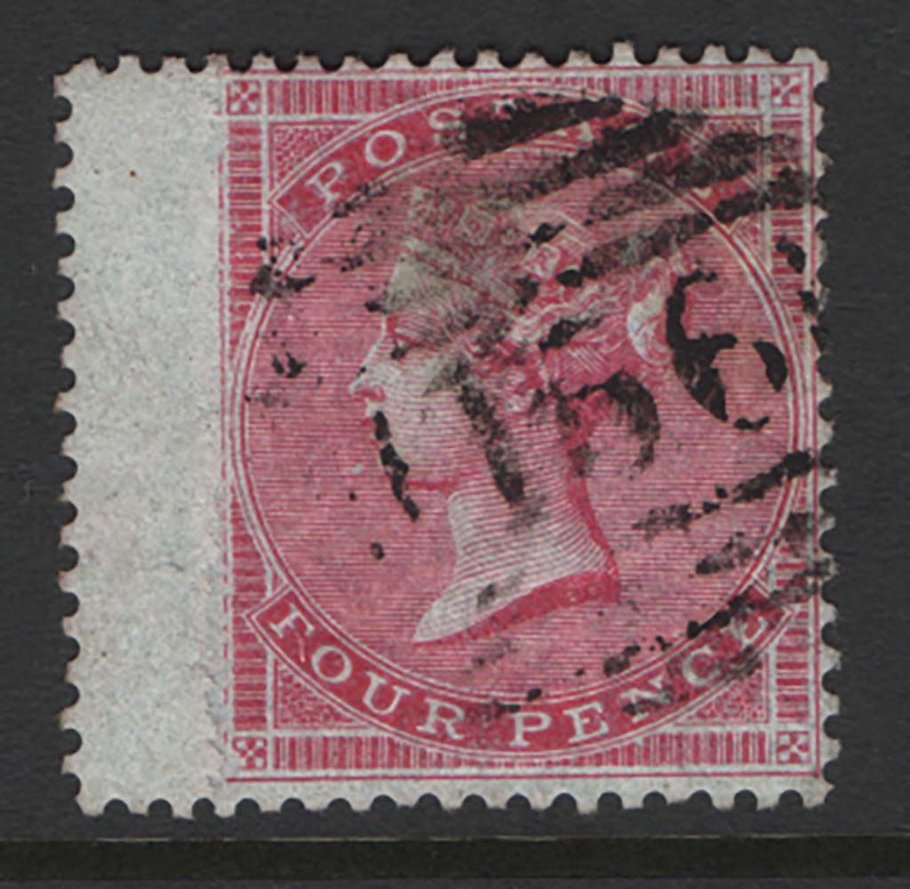 GB 1855 4d medium garter blued glazed paper sg63 used, wing margin added, great appearance, cat £575 [ref: 294/197 sa/9y0424]