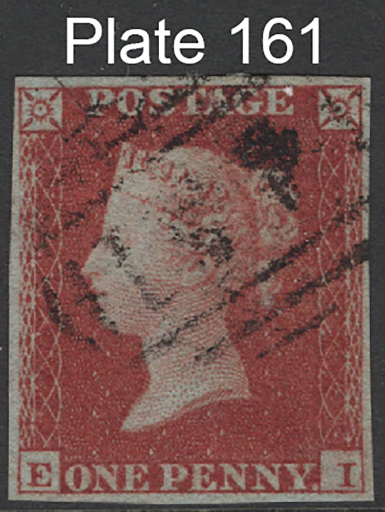 #202 GB 1841 1d red plate 161 EI vfu, 4 good margins sg8