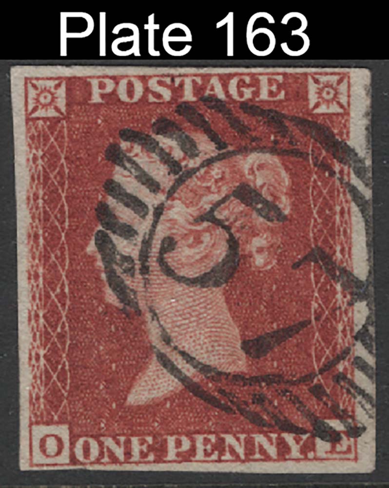 1d red plate 163 OE vfu, 4 good margins, crisp ’57’ London numeral sg8